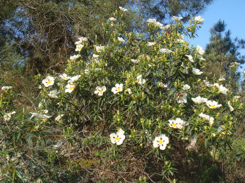 As Estevas são plantas arbustivas de pequeno porte, pertencentes à familia das Cristáceas e muito abundantes am Portugal. Tambén na nossa zona existem imensas Estevas que, nesta época do ano estão floridas, com as suas flores brancas e amarelas.
