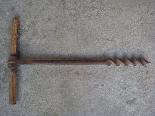 Claro está, que havia trados de várias, espessuras, para utilizar de acordo com o diâmetro do furo a abrir. Presentemente esta peça de ferramenta deixou de ser utilizada e foi substituida por um sistema mais prático e menos cansativo.