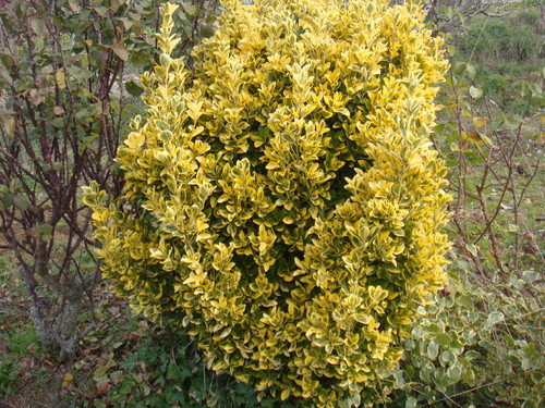 Numa propriedade agricola, aqui bem próxima da aldeia, descobrimos este peque arbusto no meio de umas roseiras. Não sabemos o seu verdadeiro nome. Também não teria qualquer significado trazê-lo aqui, não fosse o facto de estar numa propriedade agricola. Já temos visto destes arbustos, mais pequenos, mas em vasos ou em jardins. Cremos que numa propriedade agricola será o único.